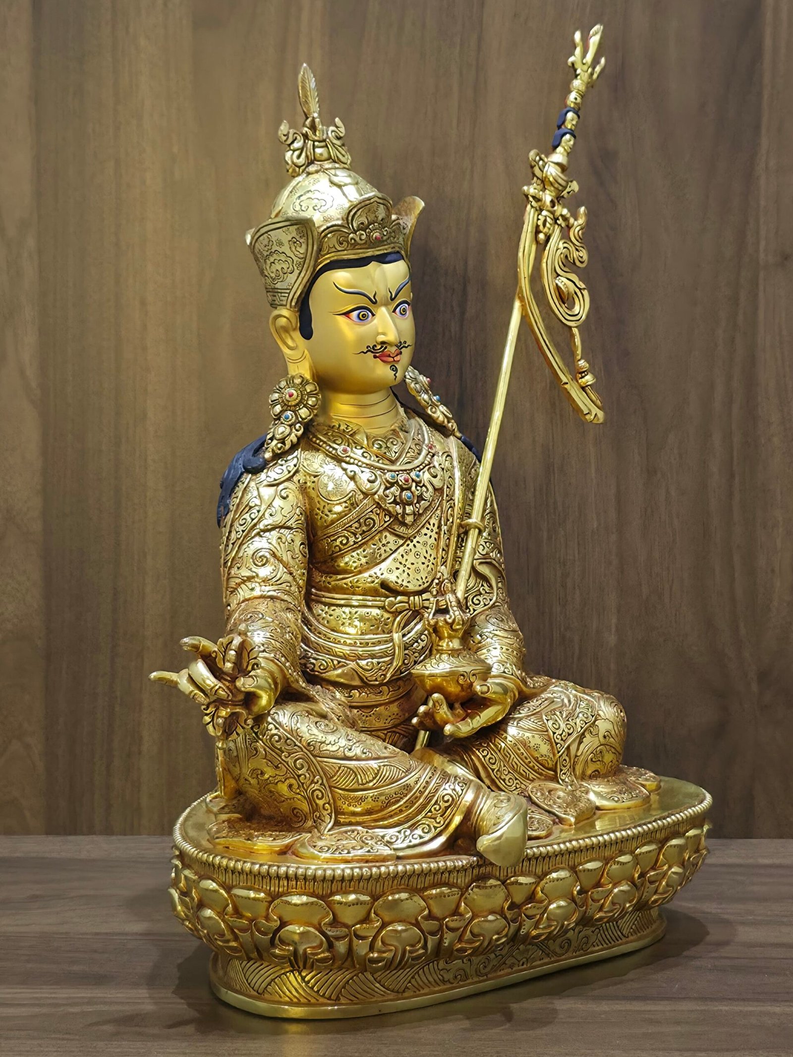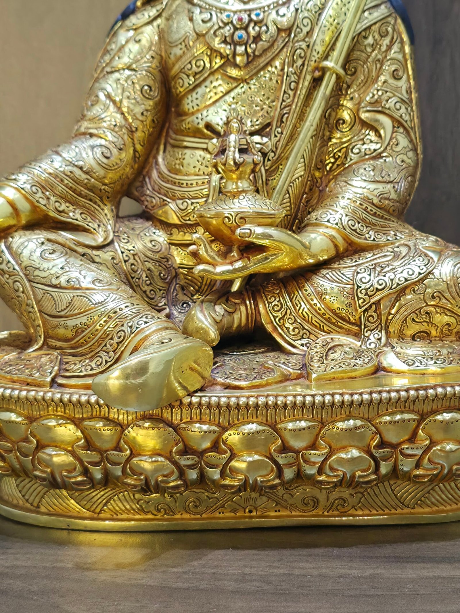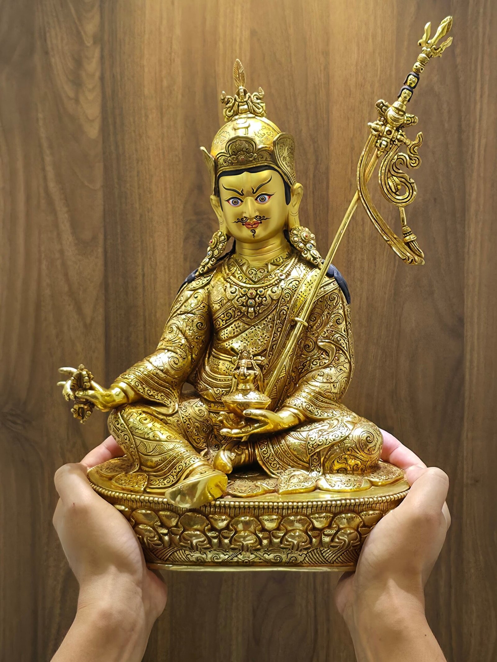 Guru Rinpoche Statue – 24K Gold Plated Large 36 cm Padmasambhava Sculpture – Buddhist Deity