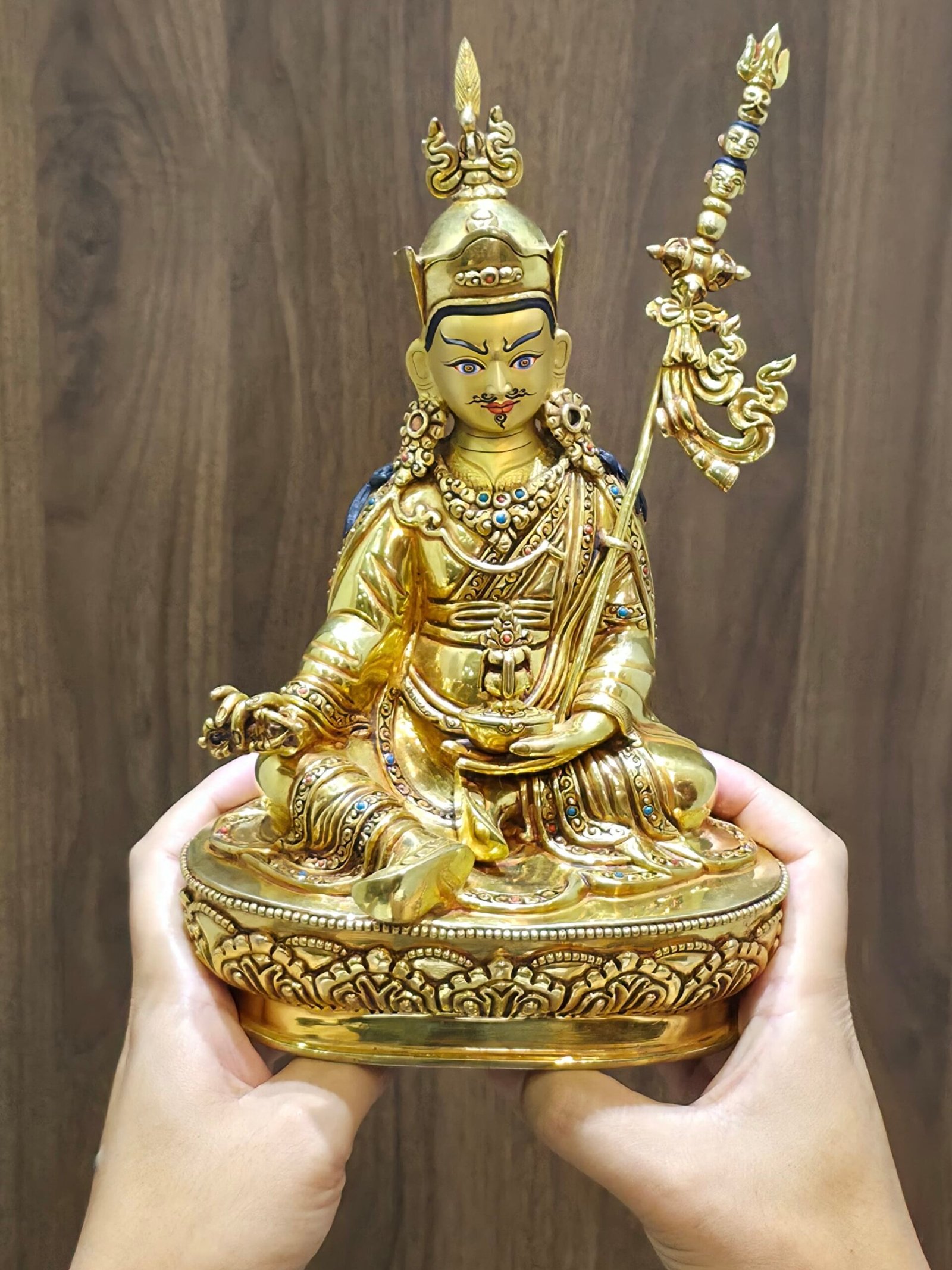 –> Premium Materials: Copper body with 24K gold plating for durability and a radiant, long-lasting finish. The gold-powder painted face highlights Guru Rinpoche’s sharp, compassionate gaze.